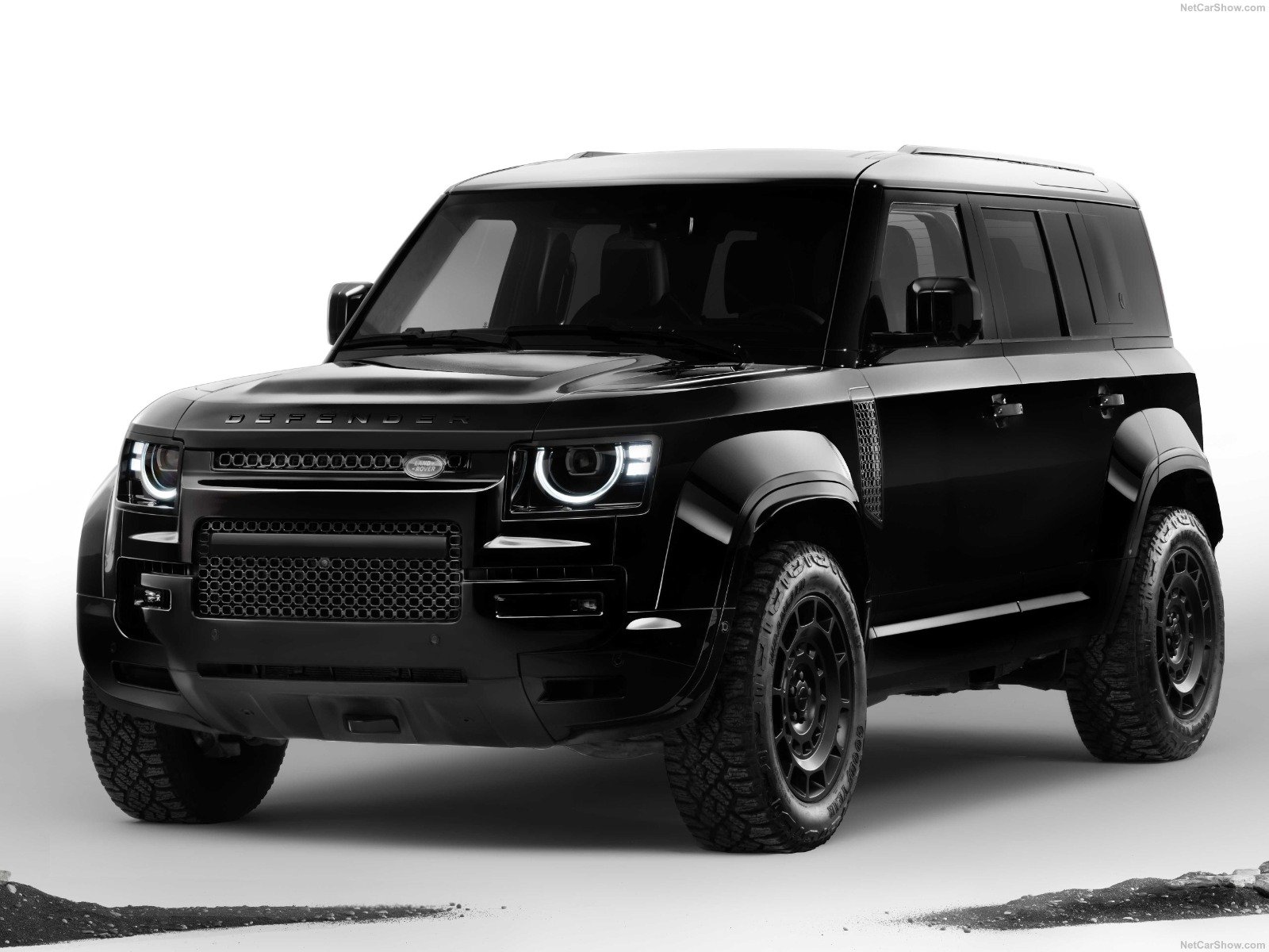 O protetor inferior dianteiro e as placas de proteção traseiras têm acabamento em Preto Acetinado com revestimento em pó (Satin Black Powder Coat), com os olhais de recuperação expostos em Preto Acetinado, enquanto uma cobertura do olhal de reboque em Preto Brilhante na frente e ponteiras de escape quádruplas em Preto Brilhante na traseira proporcionam um acabamento contrastante. O oval da Land Rover na grade é preto com a inscrição em prata escurecido. Até mesmo elementos da parte inferior da carroceria apresentam acabamento em Preto Brilhante ou Acetinado, incluindo a cobertura do silenciador de escape e da caixa central, e o engate de reboque elétrico retrátil opcional.