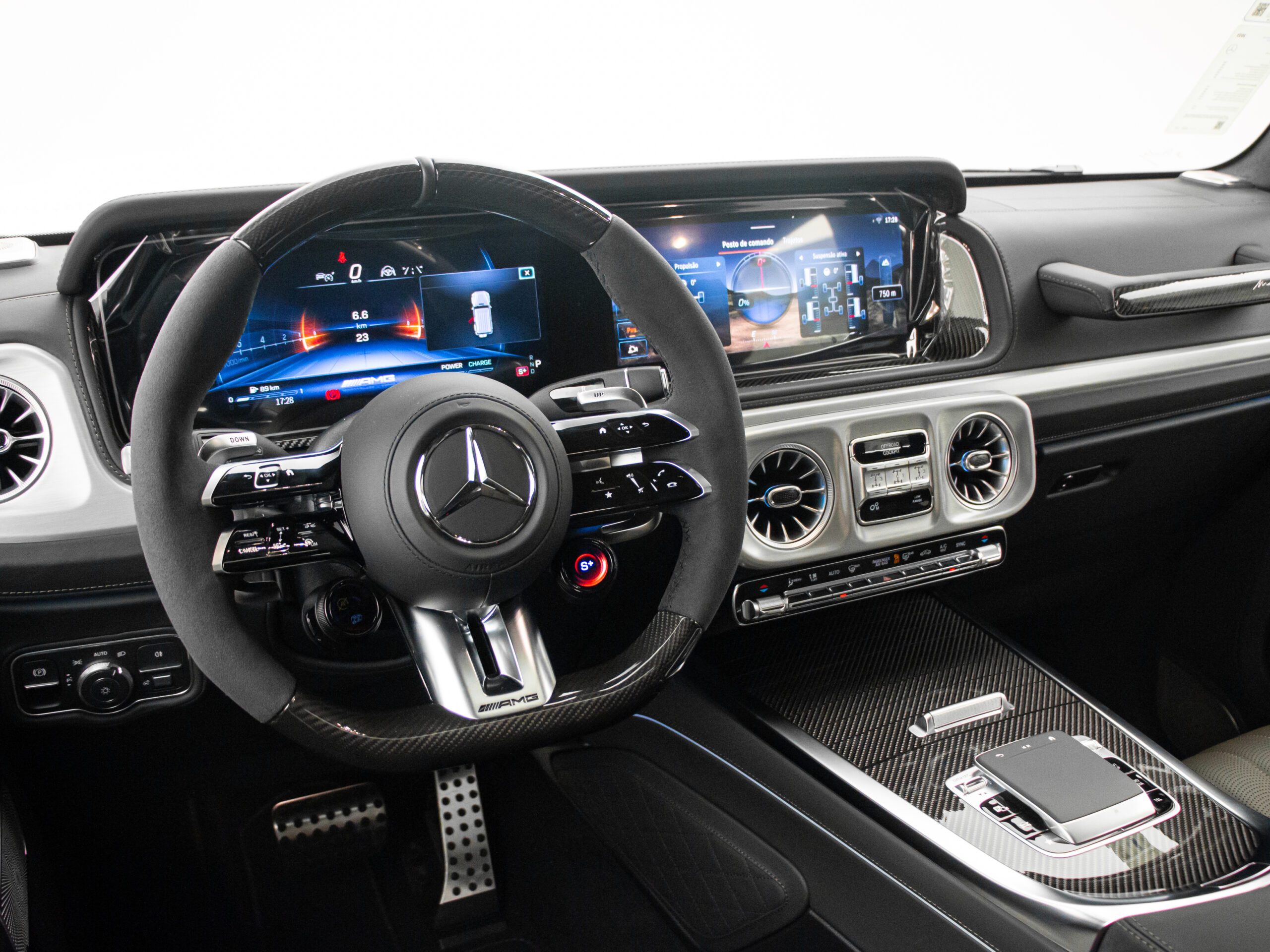 Blindado NIII-A, Cor Olive Magno (Manufaktur: R$35.000,00), Rodas 21″, Pacote Off-Road, Pacote AMG Night, Câmeras 360°, Volante AMG em Carbono e Alcântara, Interior em Carbono Brilhante, Bancos em Couro Bicolor com Aquecimento/Resfriamento e Massagem, Bancos Traseiros com Aquecimento, Ar Digital Trizone, Forro de Teto em Alcântara, Som Burmester, Diversos Modos de Condução, Iluminação Ambiente em 64 Cores, Painel Digital, Apple Car Play & Android Auto, Porta-Malas de 454 Litros (Bancos Traseiros Rebatidos: 1941 Litros), Faróis em LED (Multibeam LED). Entrega: 01/05.